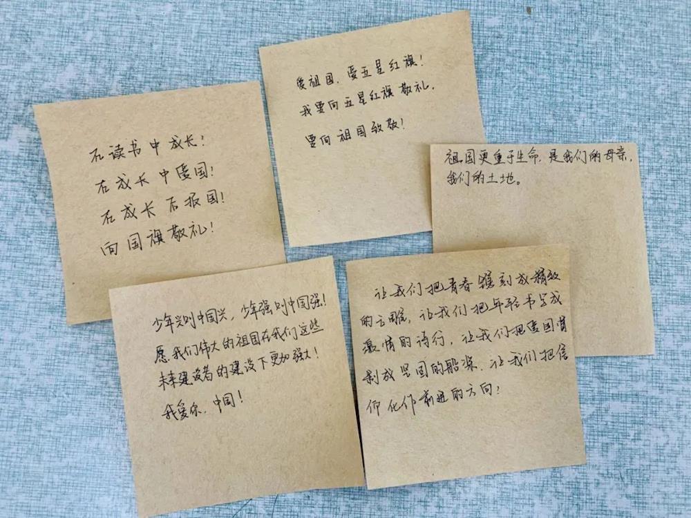 10月20日下午,木渎金山高级中学组织各班以“我手写我心 写出爱国情”为主题开展班会课。班会课上,各班的班主任老师带领着同学们回顾了祖国一路走来的艰辛历程和不朽功绩。而同学们也纷纷拿起笔亲手写下心中对“国旗”和“祖国”的深情。
