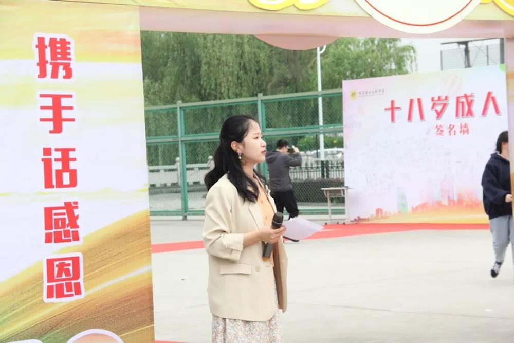 勇挑重担,立下高考必胜乃至人生有成的志向,迈向成人门,踏上成才路,从那里出发,开始你们青春的征程,肩负起社会的责任。同学们整理心情,严肃庄严,走过成人门。