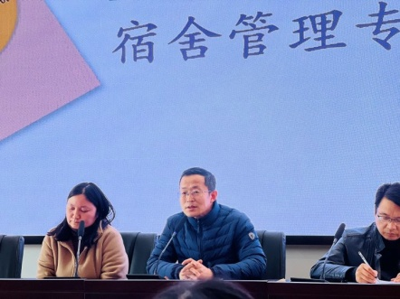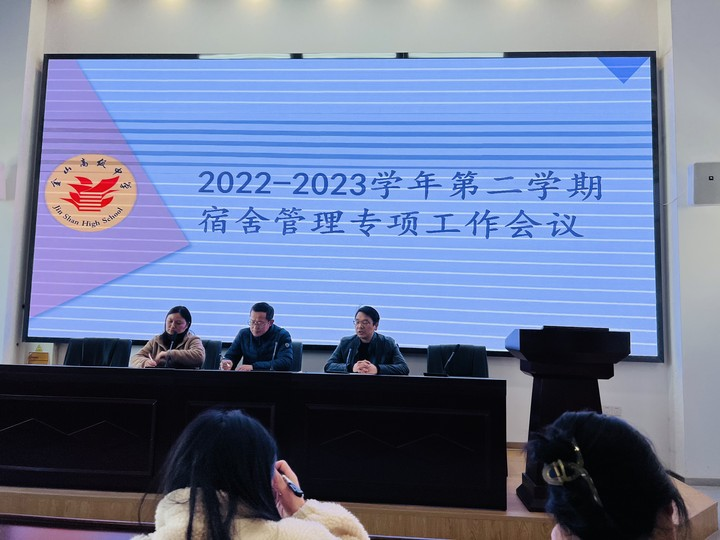 2月20日中午,金山高级中学宿舍管理专项工作会议在阶梯教室召开。岳钦副校长、德育处全体成员、各年级部领导、全体正、副班主任参加会议。