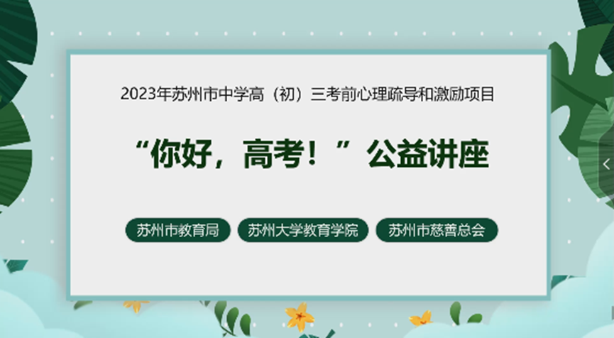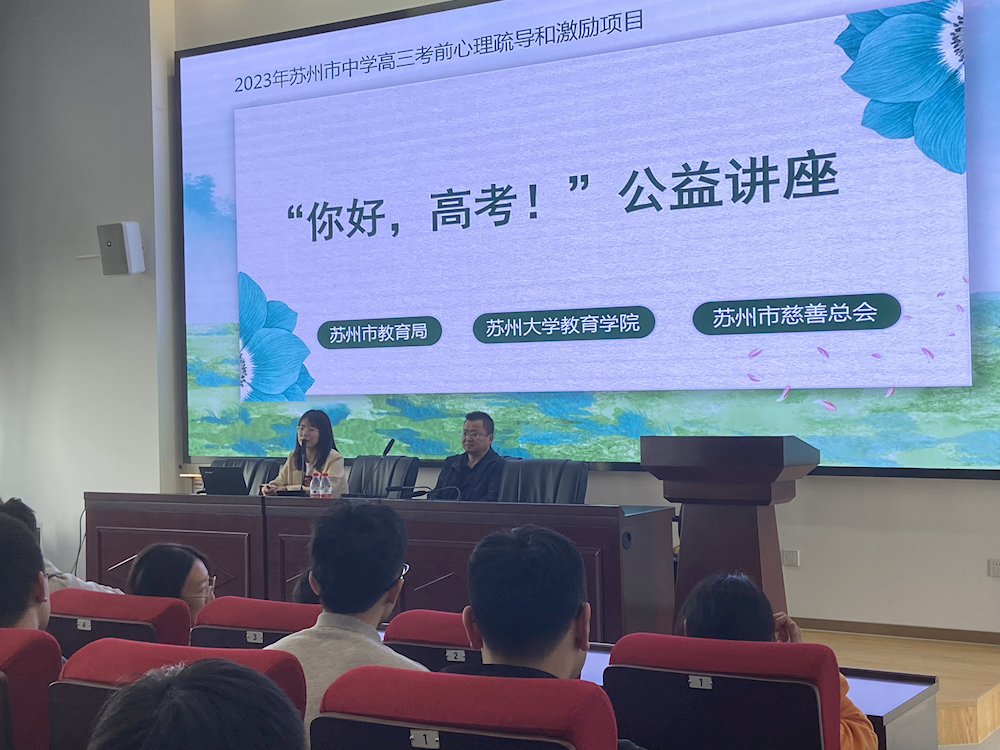 为帮助我校高三学生提升学习专注力、高效备考,在苏州市教育局、苏州大学教育学院、苏州市慈善总会的支持与指导下,我校邀请到苏州市工业园区星海实验中学专职心理教师段越老师举行了《高三君,这些Tips来帮你》心理讲座。