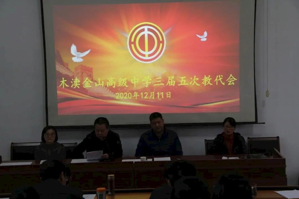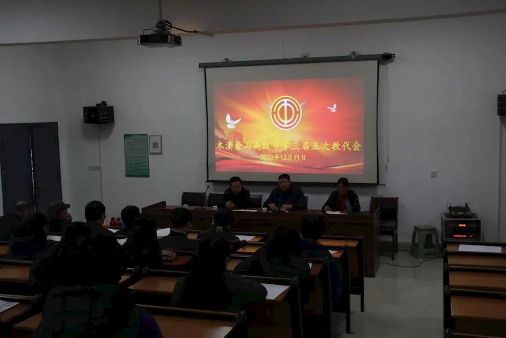 12月11日下午,木渎金山高级中学全体教职工代表在明德楼一楼会议室召开第五届教职工代表大会五次会议,本次会议的主题是教育发展方案的教代会表决工作,大会由校团委书记张雪琼主持。