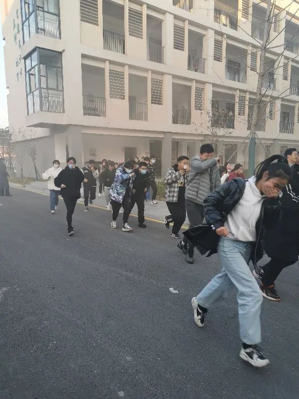 高一高二年级均安全撤离至学校操场,高三年级则安全撤离到教学楼附近的安全空地,与此同时,医疗人员接到紧急指令后,按计划携带急救物资到达负责区域,已做好抢救伤员的准备工作,若发现情况便及时向总指挥汇报。各班班主任则负责集中班级学生队伍,并做好点名工作,并把人员汇总给年级组长,年级组长把人数汇给副总指挥陈丽金校长。而宣传人员接到紧急指令,已立即赶到现场进行实况跟踪录像和拍照,并向总指挥及时汇报情况通报信息。