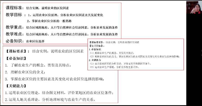 冬阳和暖,教研共进。近日江苏省马莉莉网络名师工作室暨吴中区中学地理(马莉莉)名师工作室12月集中研修活动在线上进行。我校高三地理备课组长、吴中区高中地理青年教师基本功竞赛一等奖获得者张婷老师,给所有学员展示了一节《农业区位因素》公开课。