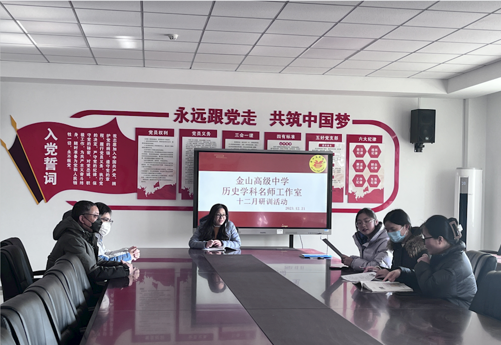 2023年12月21日,吴中区金山高级中学历史学科名师工作室如期举行,工作室成员齐聚一堂进行研修活动。