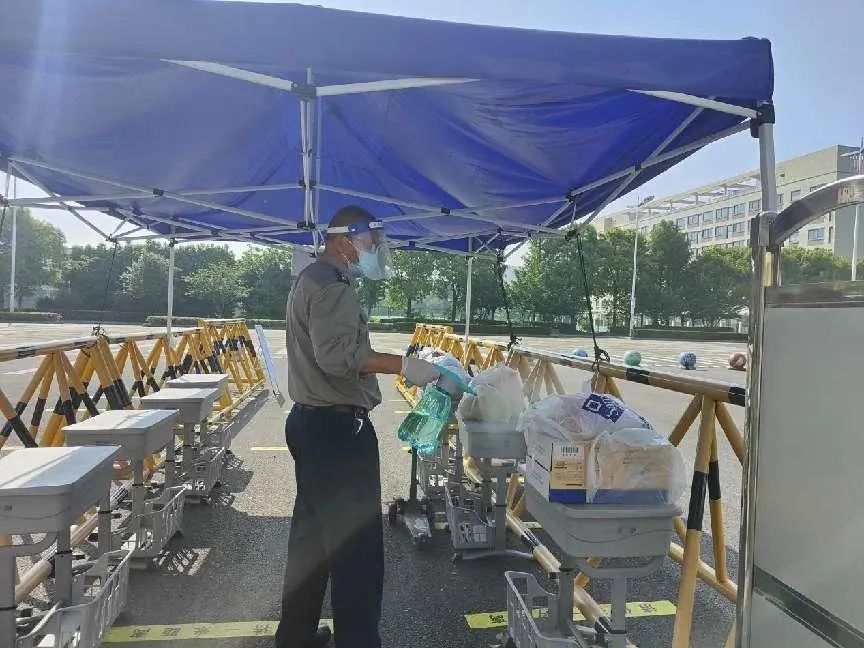 全校45位高三教师,12位行政,23位后勤人员与同学们一道封闭在学校,学校总务处全力调度,保证防疫物资的储备与日常生活物资的发放,维持着学校正常的运转。