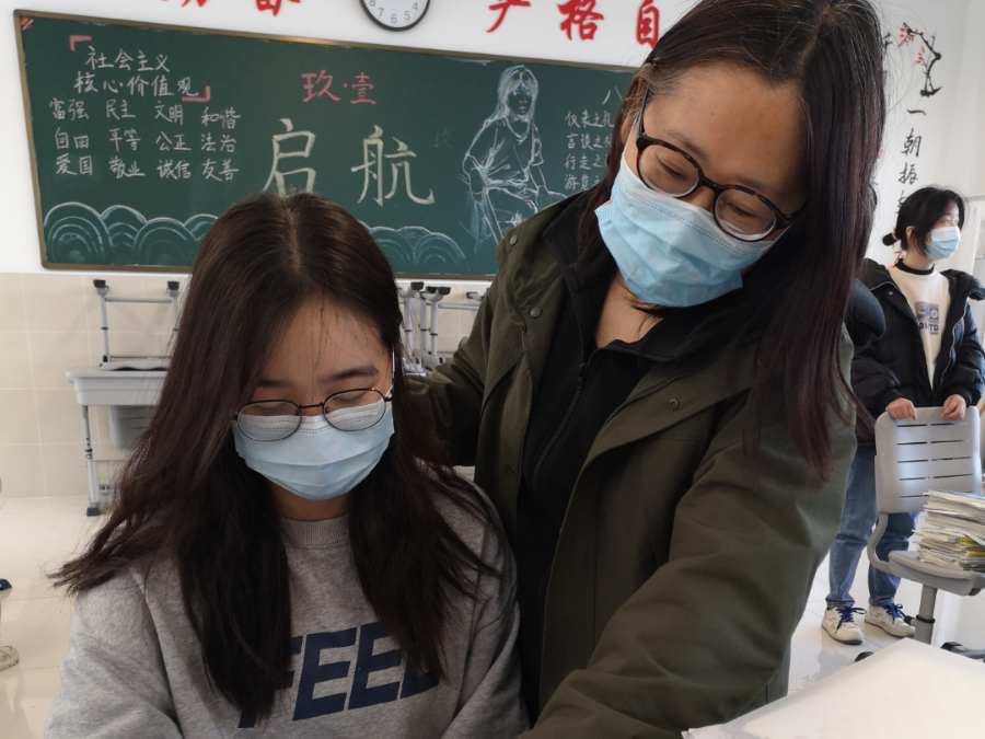 封闭管理以来所有入校物资都放在物资缓冲区消杀静默后再移至校内各班级的分发点。封闭管理下,老师们对高三同学的鼓励却是无时不刻:上课时的提醒、解题时的解惑、课下的答疑、晚自习后的叮咛。关爱处处,谢谢声声,两种期盼、两处心安。