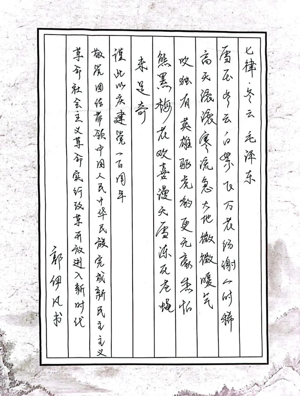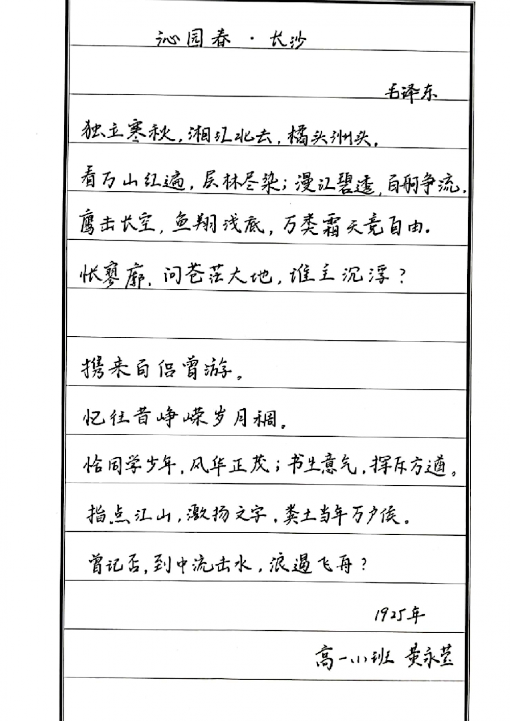 同学们用饱满的热情书写了寓意积极乐观、勇往直前的革命精神的《七律·长征》,《沁园春·长沙》等作品,都很好地展现了自身的书写基本功。