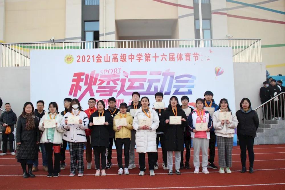 24日的闭幕式,举行了隆重的颁奖典礼,获得单项奖和团体奖的同学和班级分别上台领奖。第十六届体育艺术节的成功举办鼓舞了金山高中全校师生,此次体育艺术节全校师生积极参与,是全体金高人共同缔造的一次盛会。