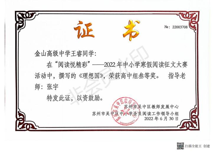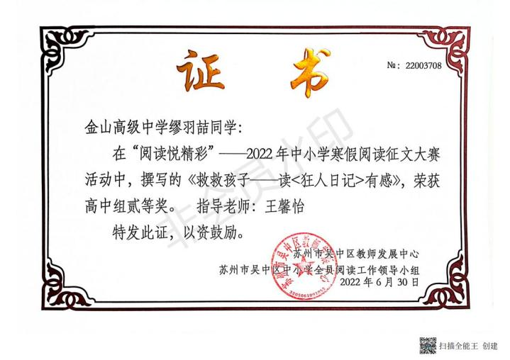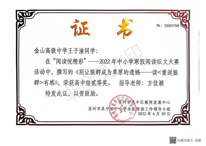 精心组织各级各类教育部门组织的假期阅读征文活动。由教科室制定活动方案,语文组和班主任具体实施,学生参与度广、积极性较高,并多次获奖。