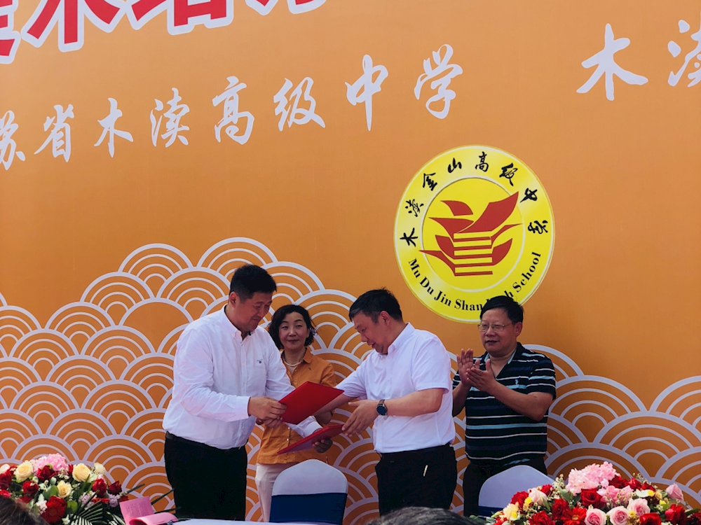 签约仪式上,江苏省木渎高级中学校长张飞,木渎金山高级中学校长於学林分别就艺术课程的融合与特色办学的方向进行了发言,随后两位校长正式签订了《“美术培东班”合作办学协议》;参加签约仪式的各级领导、嘉宾还一同实地考察了即将投入使用的木渎金山高级中学新校区。