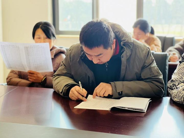 2月15日中午,金山高级中学高二年级全体教师大会暨期末成绩分析会在党员活动室召开。於学林校长、陈丽金副校长和高二年级部全体成员参会。